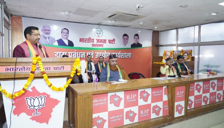 देहरादून । भाजपा के संगठन महाविस्तार अभियान के तहत प्रदेश मुख्यालय मे आयोजित कार्यशाला का शुभारंभ करते हुए भाजपा प्रदेश महामंत्री संगठन श्री अजेय जी ने कहा कि संगठन की शक्ति का अनुभव हम सबने विभिन्न चुनावों में किया है, और अब तकनीक के इस युग में हम बाकी सभी दलों से एक कदम आगे हैं। लोक सभा चुनाव को देखते हुए हम सभी को इस कार्य को मिशन मोड में संपादित करते हुए आगे बढ़ना है। उन्होंने कहा कि बूथ स्तर से लेकर जिले तक सभी कार्यकर्ता एक विशेष एप के जरिये आपस मे जुड़ सकेंगे जिससे सरकार की योजनाओं को आम जन तक पहुंचाने मे आसानी होगी और उन्हे लाभांवित किया जायेगा।