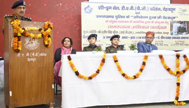 मुख्यमंत्री के विजन 2025 ड्रग्स फ्री देवभूमि को साकार करने की अपनी मुहिम को आगे बढाते हुए मंगलवार को वरिष्ठ पुलिस अधीक्षक ने डीएवी (पीजी) कॉलेज में छात्र-छात्राओ को नशे के प्रति जागरूक करने के उद्देश्य से एंटी ड्रग्स अवेयरनेश प्रोग्राम का आयोजन किया। नशे के दुष्प्रभावों के बारे में अवगत कराते हुए महोदय द्वारा बताया गया कि अक्सर युवा शौक के तौर पर नशे की शुरूआत करते है तथा धीरे-धीरे उसके आदि हो जाते है तथा नशें की पूर्ति के लिए अपराध की ओर अपना कदम बढाते है। चोरी, लूट, नकबजनी आदि की अधिकतर घटनाओं में नशे के आदि व्यक्ति संलिप्त पाये गये है, साथ ही नशे के आदि नाबालिक युवकों द्वारा भी अपने नशे के शौक की पूर्ति के लिए चोरी, लूट व अन्य आपराधिक घटनाओं कों अंजाम दिया जा रहा है जो एक चिंतनीय विषय है। एसएसपी ने युवाओं को अपने जीवन में एक लक्ष्य निर्धारित करते हुए कडी मेहनत व लगन के साथ उसकी प्राप्ति तक निरंतर प्रयत्नशील रहने के लिए प्रेरित किया, साथ ही उनसे नशे से दूर रहकर एक सभ्य समाज की स्थापना करने में अपना योगदान देने की अपेक्षा की। पुलिस की ओर से युवाओं की काउंसलिग के लिए डाक्टर मनोचिकित्सक, रिटायर्ड पुलिस अधिकारियों, सामाजिक कार्यकर्ताओं तथा बच्चों के अभिभावकों की सहायता ली जा रही है। अंत में छात्र छात्राओं व कालेज प्रबंधन से जनपद पुलिस द्वारा नशें के विरूद्ध चलायी जा रही मुहिम में अपना सहयोग प्रदान करने तथा अपने आस पास नशा करने अथवा बेचने वाले व्यक्तियों के संबंध में कोई भी जानकारी प्राप्त होने पर उसकी सूचना पुलिस को देने के लिए अवगत कराया। कार्यक्रम के दौरान क्षेत्राधिकारी डालनवाला ने छात्राओं को उत्तराखंड पुलिस के महिलाओं की सुरक्षा के लिए किए जा रहे प्रयासों से अवगत कराते हुए उन्हें उत्तराखंड पुलिस एप के गौरा शक्ति फीचर के बारे में जानकारी प्रदान की। कार्यक्रम में पुलिस अधीक्षक नगर, सीओ डालनवाला, कालेज प्रबंधन व छात्र-छात्राएं उपस्थित रहे।