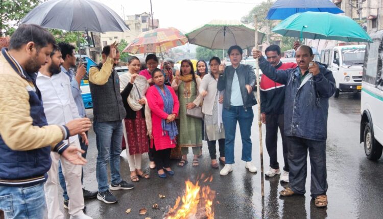 युवक से सरेआम मारपीट मामले में मंत्री अग्रवाल का उक्रांद ने किया पुतला दहन