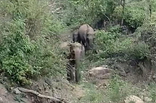 रविवार प्रातः करीब सात बजे गंगोत्री राष्ट्रीय राजमार्ग पर ओणी बैंड से करीब तीन किलोमीटर आगे नरेंद्रनगर की ओर हाईवे के ऊपर चार हाथियों का झुंड नजर आया। इनमें दो वयस्क और दो गज शिशु शामिल थे। यह झुंड हाईवे पार करने की कोशिश में काफी देर तक सड़क के ऊपर ढलान पर खड़ा रहा।