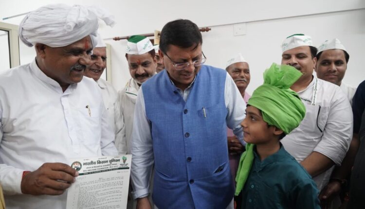 इस दौरान भारतीय किसान यूनियन वेलफेयर फाउंडेशन के राष्ट्रीय अध्यक्ष सोमदत्त शर्मा के नेतृत्व में भारतीय किसान यूनियन वेलफेयर फाउंडेशन के पदाधिकारियों ने मुख्यमंत्री से भेंट कर उत्तराखण्ड में कृषि और उघान को तेजी से बढ़ावा देने एवं किसानों के हित में सरकार द्वारा लिये जा रहे निर्णयों की सराहना की और मुख्यमंत्री का आभार भी व्यत्तफ किया। राज्य में किसानों को और बेहतर सुविधाएं मिल सके, इसके लिए उन्होंने मुख्यमंत्री को मांग पत्र भी सौंपा। मुख्यमंत्री ने कहा कि किसानों की आय में वृद्धि के लिए सरकार द्वारा अनेक प्रयास किये जा रहे हैं।