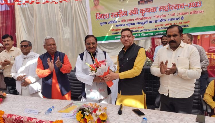 हरिद्वार: डॉ0 रमेश पोखरियाल निशंक पूर्व शिक्षा मंत्री भारत सरकार, पूर्व मुख्यमंत्री उत्तराखण्ड, सांसद हरिद्वार ने बृहस्पतिवार को बहादराबाद स्थित मृदा परीक्षण प्रयोगशाला में कृषि विभाग द्वारा आयोजित कृषक महोत्सव रबी-2023 का फीता काटकर एवं दीप प्रज्ज्वलित कर शुभारम्भ किया।