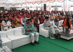 भारत सरकार के कार्यक्रम में मुख्य अतिथि अध्यक्ष मनोज कुमार व विशिष्ट अतिथि श्रीमती मधु चौहान व राठौर चौहान व विनोद खंडूरी का कार्यकर्ता द्वारा व विभागीय अधिकारी द्वारा जोरदार स्वागत किया गया कार्यक्रम का शुभारंभ अतिथियों द्वारा किया गया। इस कार्यक्रम में संस्कृत लोक मंच कलाकारों ने अपने गीतों से जनता का मनोरंजन किया।