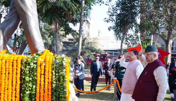 मुख्यमंत्री पुष्कर सिंह धामी ने आज भारत के प्रथम सी डी एस जनरल बिपिन रावत की द्वितीय पुण्यतिथि के अवसर पर देहरादून के कनक चौक पहुंच कर उनकी प्रतिमा पर पुष्पांजलि अर्पित की