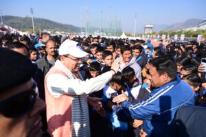 देहरादून। मुख्यमंत्री पुष्कर सिंह धामी ने मंगलवार को महाराणा प्रताप स्पोर्ट्स कॉलेज रायपुर, देहरादून में राज्य स्तरीय खेल महाकुंभ का शुभारंभ किया। राज्य के सभी जनपदों से राज्य स्तरीय खेल महाकुंभ में प्रतिभाग करने आये खिलाड़ियों के बीच जाकर मुख्यमंत्री ने उनका उत्साह बढ़ाया। इस अवसर पर मुख्यमंत्री ने घोषणा की कि राज्य स्तरीय खेल महाकुंभ में प्रथम, द्वितीय एवं तृतीय स्थान प्राप्त करने वाले खिलाड़ियों को स्पोर्ट्स किट प्रदान की जाएगी। राज्य स्तरीय खेल महाकुंभ के शुभारंभ के अवसर पर बालक वर्ग की 800 मीटर दौड़ स्पर्धा के प्रथम तीन स्थान पाने वाले खिलाड़ियों को मुख्यमंत्री ने पुरस्कृत भी किया।