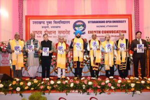 उत्तराखंड मुक्त विश्वविद्यालय के अष्टम दीक्षांत समरोह में राज्यपाल (रि.) लेफ्टिनेंट जनरल गुरमीत सिंह, मुख्यमंत्री पुष्कर सिंह धामी एवं उच्च शिक्षा मंत्री डॉ. धन सिंह रावत ने 21 छात्रों को विश्वविद्यालय स्वर्ण पदक, दो छात्रों को कुलाधिपति स्वर्ण पदक एवं तीन प्रायोजक स्वर्ण पदक प्रदान किये। इसके साथ ही पांच छात्रों को पीएचडी की उपाधि तथा विभिन्न विद्याशाखाओ में 15417 को स्नातक और स्नाकोत्तर की उपाधि प्रदान की गई। इस दौरान राज्यपाल एवं मुख्यमंत्री ने मुक्त विश्वविद्यालय के कॉसैप्ट की सराहना की, साथ ही उन्होंने सभी छात्रों के उज्ज्वल भविष्य की कामना की। उच्च शिक्षा मंत्री डॉ. धन सिंह रावत ने कहा कि उच्च शिक्षा के क्षेत्र में राज्य सरकार ने तीन बड़े कदम उठाये हैं जिसमें प्रत्येक छात्र-छात्राओं का अब डीजी लॉकर के माध्यम से डिग्रियां दी जायेगी। दूरस्थ शिक्षा में एडमिशन लेने वाले छात्र-छात्राओं को निःशुल्क पुस्तकें वितरित की जायेंगी। परीक्षा परिणाम समय पर घोषित हों इसके लिये प्रत्येक विश्वविद्यालयों में केन्द्रीय मूल्यांकन व्यवस्था लागू की जायेगी इसके लिये पीएम-रूसा से तहत विश्वविद्यालयों को 20-20 करोड़ की धनराशि आवंटित की जायेगी।