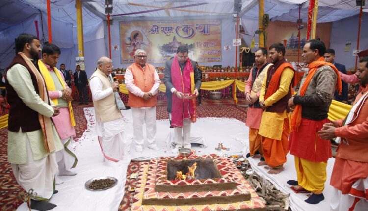 देहरादून। मुख्यमंत्री पुष्कर सिंह धामी ने शुक्रवार को विनोद नगर वॉर्ड स्थित श्री बद्रीनाथ मंदिर में श्रीमद् भागवत महापुराण ज्ञान-यज्ञ आयोजन समिति द्वारा आयोजित श्रीराम कथा के 18वें धार्मिक महा-आयोजन में प्रतिभाग किया। इस अवसर पर उन्होंने श्रीराम कथा सुनी। श्रीराम कथा का वाचन भगवताचार्य डॉ. गीता राम त्रिपाठी द्वारा किया गया।