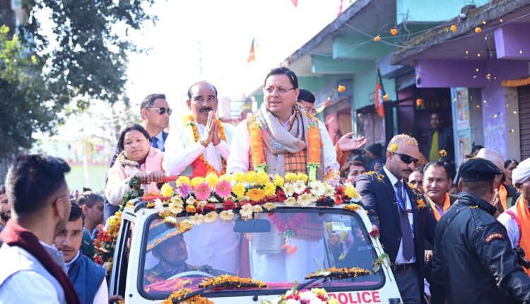 देहरादून। मुख्यमंत्री पुष्कर सिंह धामी ने मंगलवार को कपकोट, बागेश्वर में विकास खण्ड कपकोट से केदारेश्वर मैदान तक आयोजित रोड शो में प्रतिभाग किया। इस दौरान हजारों की संख्या में मौजूद स्थानीय जनता ने पुष्प वर्षा से मुख्यमंत्री का स्वागत किया।