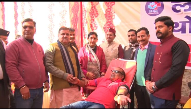 देश के युवाओं को सबसे मूल्यवान दान करने के लिए आहवान किया है यह सराहनीय कार्य है। यह बहुत प्रभावशाली व सराहनीय प्रयास है। रक्तदान से बड़ा कोई दान पुष्य और सेवा नहीं है। इससे एक साथ कई मरीजों की जान बचती है। समाजिक कार्यों में भारतीय जनता पार्टी का उन्हें हमेशा सहयोग मिलता रहेगा। उन्होंने लाईफ केयर पैथौलॉजी सेंटर के निदेशक राजेश रावत, पत्रकार साथियों, समाजसेवियों की सराहना करते हुए कहा कि वह सभी मिलकर स्वास्थ्य के क्षेत्र में सराहनीय कार्य कर रहे हैं। इस मौके पर भाजपा प्रदेश अध्यक्ष ने स्वास्थ्य के क्षेत्र में सराहनीय कार्य करने वालों को सम्मानित भी किया। इसमें बड़ी संख्या में लोग रक्तदान को पहुंचें। स्वास्थ्य कारणों से कई लोग रक्तदान नहीं कर पाये। आज हुए स्वैच्छिक रक्तदान शिविर में 100 से अधिक लोगों ने रक्तदान किया। लाईफ केयर पैथौलॉजी सेंटर पिछले कई सालों से हर साल रक्तदान शिविर का आयोजन करता रहा है।