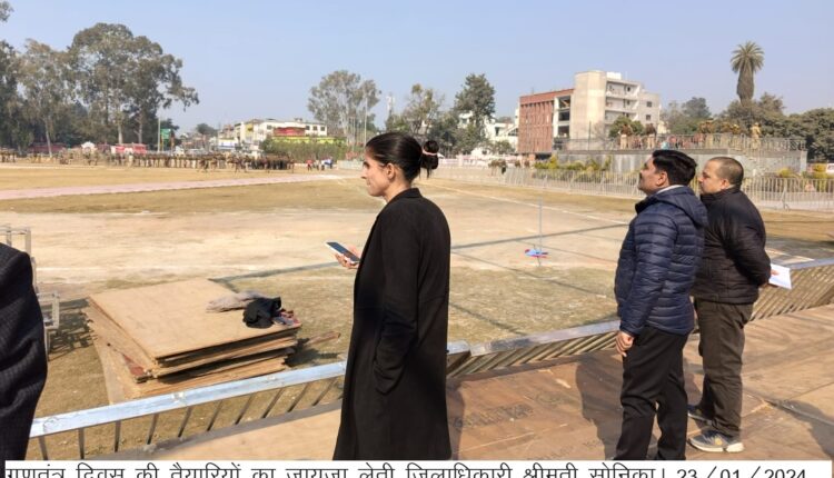 जिलाधिकारी श्रीमती सोनिका ने परेड ग्राउण्ड का स्थलीय निरीक्षण करते हुए गणतंत्र दिवस के अवसर पर आयोजित होने वाले राज्यस्तरीय कार्यक्रम की तैयारियों का स्थलीय निरीक्षण किया।