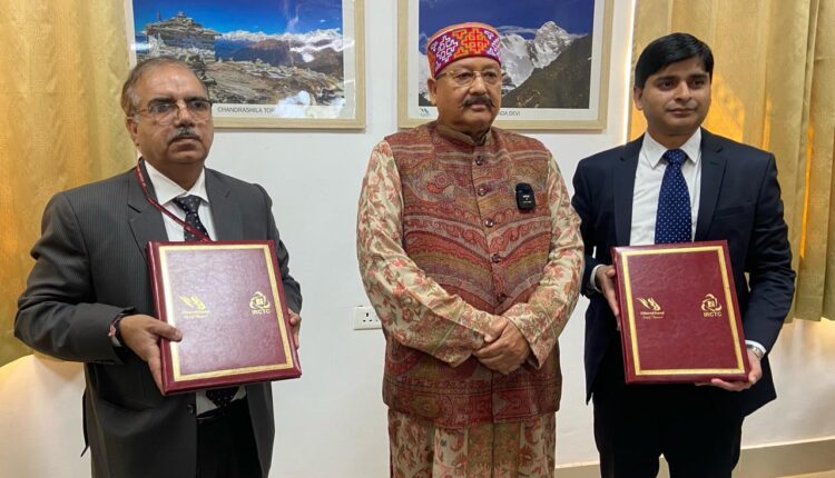 देहरादून । पर्यटन मंत्री सतपाल महाराज की गरिमामयी उपस्थिति में पर्यटन विभाग एवं आई०आर०सी०टी०सी० के मध्य देश के विभिन्न क्षेत्रों से राज्य के अल्पज्ञात गंतव्यों के लिए एक विशेष पर्यटक ट्रेन मानसखण्ड एक्सप्रेस चलाए जाने के लिए अनुबंध किया गया है। पर्यटन विभाग की ओर से डा० हरीश रेड़तोलिया, अपर मुख्य कार्यकारी अधिकारी, तथा आई०आर०सी०टी०सी० की ओर से समूह महाप्रबन्धक सुनील कुमार, द्वारा अनुबन्ध पर हस्ताक्षर किये।