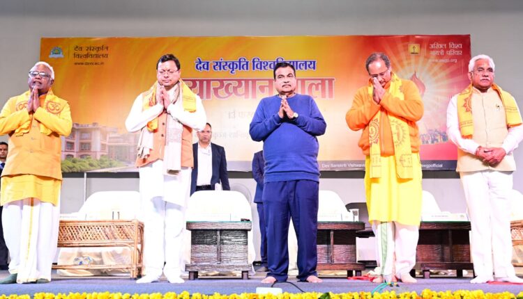 केंद्रीय सड़क परिवहन एवं राजमार्ग मंत्री नितिन गडकरी और मुख्यमंत्री पुष्कर सिंह धामी ने देव संस्कृति विश्वविद्यालय के व्याख्यान माला कार्यक्रम में किया प्रतिभाग