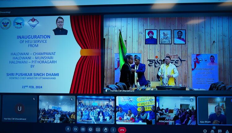 देहरादून। मुख्यमंत्री पुष्कर सिंह धामी ने गुरुवार को मुख्यमंत्री आवास, सभागार में नागरिक उडडयन विभाग द्वारा आयोजित कार्यक्रम में हल्द्वानी से मुनस्यारी, पिथौरागढ़, चम्पावत हेतु क्षेत्रीय कनेक्टिविटी स्कीम के अंतर्गत संचालित की जा रही हैली सेवा का वर्चुअल रूप से फ्लैग ऑफ कर शुभारम्भ किया।