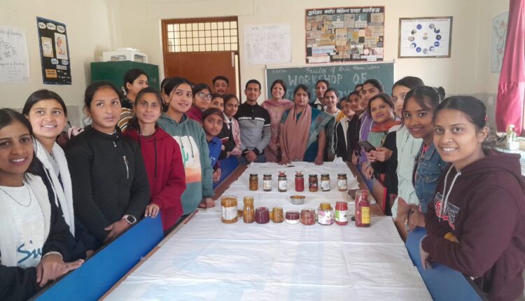 कार्यक्रम में में “द दून चूल्हा” की संस्थापक श्रीमती कृष्णा द्वारा सेब का जैम, टमाटर का सॉस, मिक्स अचार ,लाल मिर्च का अचार एवं करेले का अचार इत्यादि बनाने का प्रशिक्षण दिया गया।