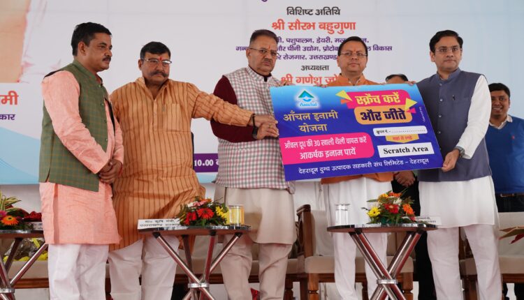 देहरादून। मुख्यमंत्री पुष्कर सिंह धामी ने मंगलवार को सर्वे ऑफ इण्डिया स्टेडियम, हाथीबड़कला, देहरादून में आयोजित कार्यक्रम में प्रतिभाग करते हुए राज्य पशुधन मिशन योजनान्तर्गत लाभार्थियों को चेक वितरण किए। उन्होंने आंचल ब्राण्ड के तहत आंचल शहद एवं आंचल इनामी योजना का भी शुभारम्भ किया।
