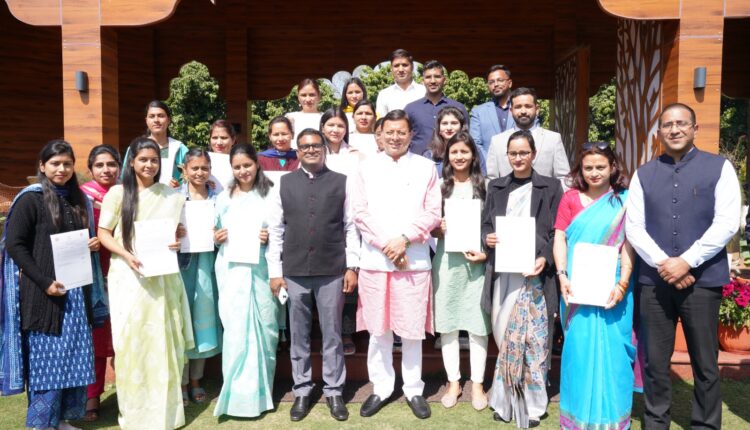देहरादून। मुख्यमंत्री पुष्कर सिंह धामी ने शुक्रवार को मुख्यमंत्री आवास परिसर में महिला सशक्तिकरण एवं बाल विकास विभाग के अंतर्गत चयनित 16 सुपरवाइजरों तथा आबकारी विभाग के अंतर्गत चयनित 10 निरीक्षक व 01 कनिष्ठ सहायक को नियुक्ति पत्र प्रदान किये। इस प्रकार कुल 27 अभ्यर्थियों को मुख्यमंत्री ने नियुक्ति पत्र वितरित किये।