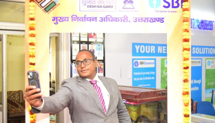 देहरादून।मुख्य निर्वाचन अधिकारी डॉ. बी.वी.आर.सी. पुरुषोत्तम ने गुरुवार को देहरादून स्थित भारतीय स्टेट बैंक के प्रधान कार्यालय में आयोजित मतदाता जागरूकता कार्यक्रम में प्रतिभाग किया। इस अवसर पर मुख्य निर्वाचन अधिकारी डॉ. पुरुषोत्तम ने “वोट करेगा उत्तराखण्ड” थीम का अनावरण किया। कार्यक्रम के दौरान मुख्य निर्वाचन अधिकारी ने वहां मौजूद समस्त बैंक कर्मियों को मतदाता शपथ दिलाई।