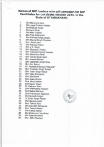 देहरादून। भाजपा ने लोक सभा चुनाव के लिए स्टार प्रचारकों की सूची जारी कर दी है।