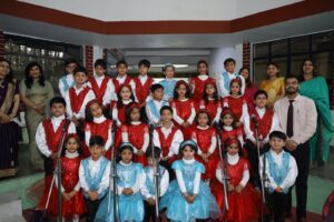 इसके बाद यूकेजी के नन्हे-मुन्ने बच्चों ने मन मोह लेने वाली नृत्य प्रस्तुति दी। कार्यक्रम के दौरान देव ने अंग्रेजी कविता ‘हियर आई कम’ सुनाई, जबकि व्योम ने हिंदी कविता ‘आज खुशी का दिन है आया’ सुनाई।