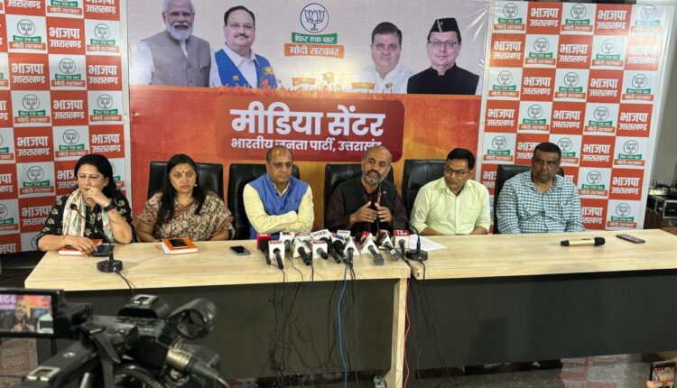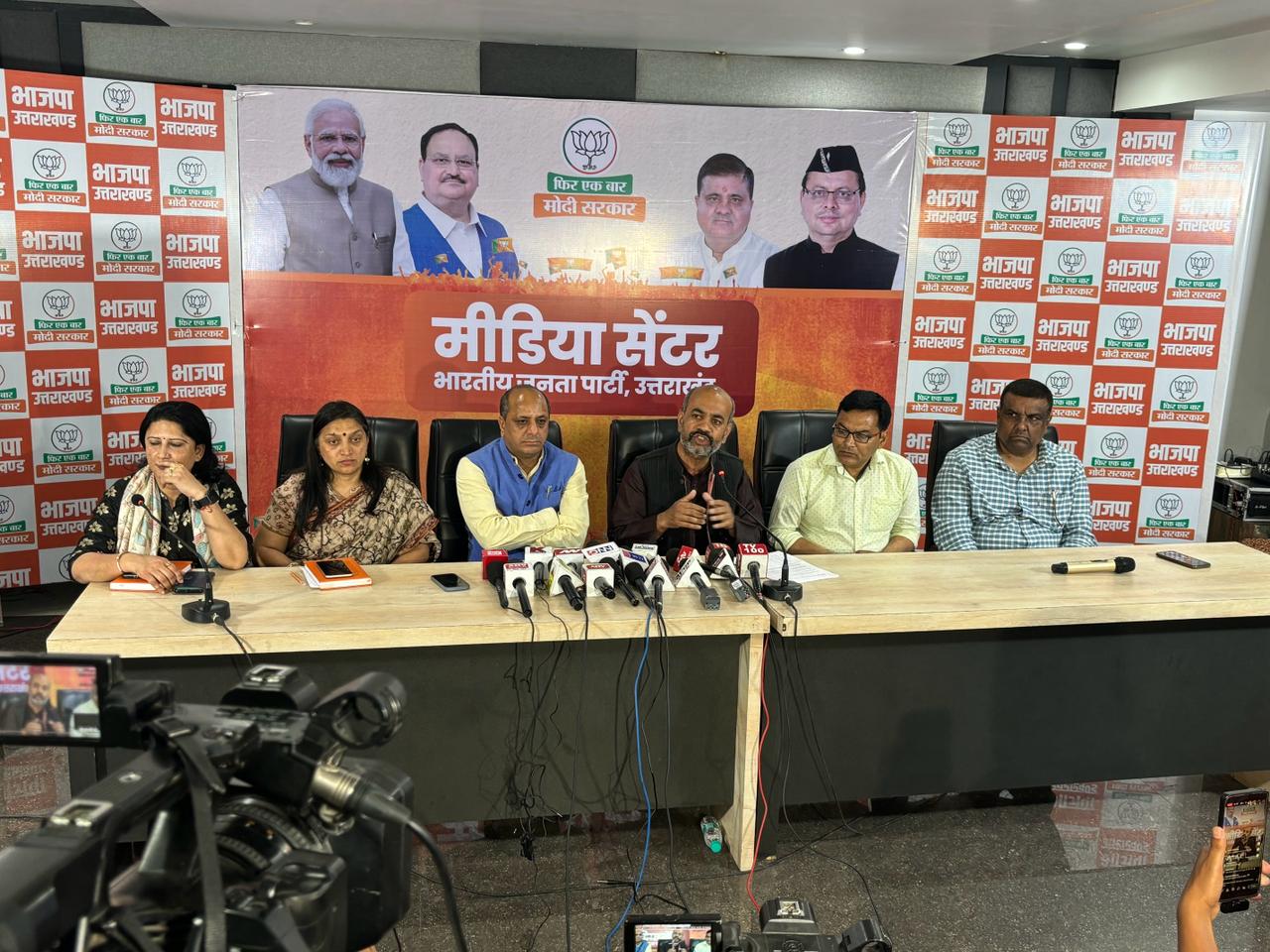 पत्रकार वार्ता के दौरान प्रदेश मीडिया प्रभारी मनवीर सिंह चौहान सह मीडिया प्रभारी राजेंद्र नेगी राजीव तलवार प्रदेश प्रवक्ता श्रीमती सुनीता विद्यार्थी श्रीमती हनी पाठक प्रमुख रूप से मौजूद रहे।