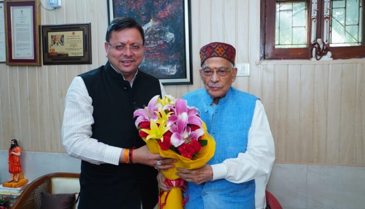 देहरादून। मुख्यमंत्री पुष्कर सिंह धामी ने शनिवार को नई दिल्ली में भारतीय जनता पार्टी के वरिष्ठ नेता पूर्व केंद्रीय मंत्री पद्मविभूषण श्री मुरली मनोहर जोशी से उनके निवास पर जाकर उनका आशीर्वाद प्राप्त किया।