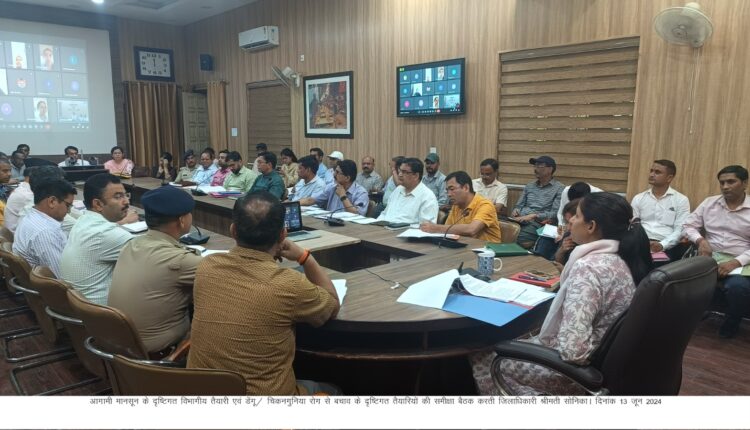देहरादून ।, जिलाधिकारी श्रीमती सोनिका की अध्यक्षता मे आगामी मानसून के दृष्टिगत विभागीय तैयारी एवं डेंगू/ चिकनगुनिया रोग से बचाव एवं जनजागरूकता कार्यक्रम के दृष्टिगत आज ऋषिपर्णा सभागार कलैक्टेªट में बैठक करते हुए संबंधित अधिकारियों को महत्वपूर्ण दिशा- निर्देश दिए।
