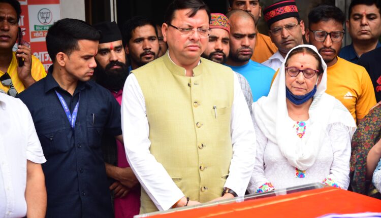 मुख्यमंत्री पुष्कर सिंह धामी ने बलबीर रोड, स्थित भाजपा कार्यालय में केदारनाथ विधायक श्रीमती शैलारानी रावत के पार्थिव शरीर पर पुष्पचक्र अर्पित कर श्रद्धांजलि दी।