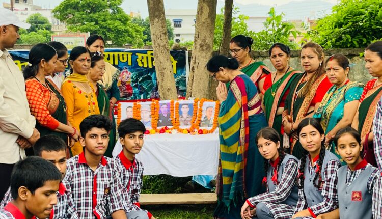 इस अवसर पर राज्य महिला आयोग की अध्यक्ष कुसुम कण्डवाल ने वीर शहीद सैनिकों को श्रद्धांजलि अर्पित करते हुए कहा कि हमारी देवभूमि वीरभूमि भी है यहां के जवान मातृभूमि की रक्षा करते हुए खुशी खुशी अपने प्राण न्योछावर कर देते है। उनका अमर बलिदान सदैव याद रखा जाएगा। उन्होंने कहा कि यह आप सब भी एक पेड़ उन वीर शहीद सैनिकों के नाम लगाए जिन्होंने अपना जीवन देश की रक्षा के लिए समर्पित कर दिया है। वहीं उन्होंने कहा कि आज के समय में पर्यावरण को सुरक्षित और बचाए रखने के लिए पेड़ है जरूरी है। बीते दिनों सभी ने देखा है कि भारी गर्मी और तपन के बीच एक एक पेड़ का कितना महत्व था, इसी लिए पेड़ है तो जीवन है। पौधरोपण के दौरान वीरभद्र जनकल्याण समिति की प्रमुख सुंदरी कण्डवाल, अरविंद चौधरी, विद्यालय के प्रधानाचार्य व अध्यापकगण, विभिन्न छात्र छात्राओं सहित मातृशक्ति उपस्थित रही।