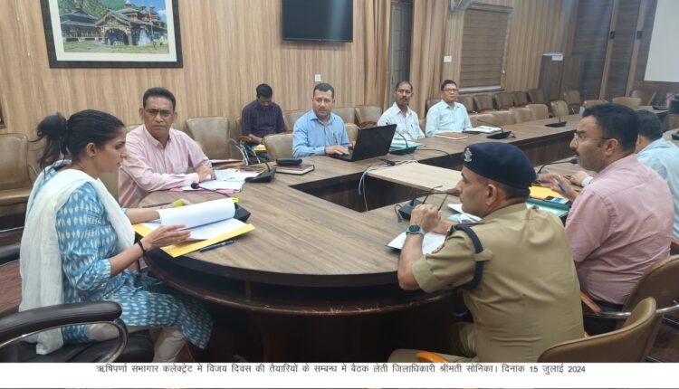 देहरादून । जिलाधिकारी श्रीमती सोनिका ने ऋषिपर्णा सभागार कलेक्टेªट में विजय दिवस की तैयारियों के सम्बन्ध में बैठक लेते हुए सम्बन्धित अधिकारियों को आवश्यक दिशा-निर्देश दिए।