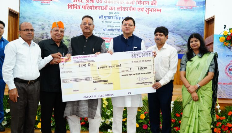 देहरादून। मुख्यमंत्री पुष्कर सिंह धामी ने शनिवार को मुख्यमंत्री कैम्प कार्यालय स्थित मुख्य सेवक सदन में उरेडा द्वारा संचालित विभिन्न योजनाओं का लोकार्पण एवं शुभारंभ किया। इस अवसर पर उन्होंने सोलर वाटर हीटर अनुदान योजना में आवेदन एवं अनुदान निर्गत किये जाने के लिए पोर्टल www.uredaonline.uk.gov.in का शुभारम्भ किया गया। प्रदेश के राजकीय भवनों पर स्थापित सोलर पावर प्लान्ट एवं सोलर वाटर हीटर, 27 भवनों पर 1.26 मे.वा. क्षमता के सोलर पावर प्लान्ट तथा 44 राजकीय भवनों पर स्थापित 48400 लीटर क्षमता के सोलर वाटर हीटर सयंत्रों का लोकार्पण किया। कार्यक्रम के मुख्यमंत्री सौर स्वरोजगार योजना के 47 लाभार्थियों को परियोजना आवंटन पत्र प्रदान किये गये तथा 04 संख्या लाभार्थियों को पी0एम0 सूर्यघर योजना के अन्तर्गत राज्य अनुदान के चेक प्रदान किये गये।