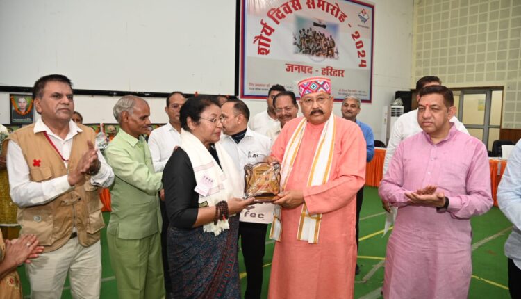 हरिद्वार में कारगिल विजय दिवस को शौर्य दिवस के रूप में ऋषिकुल आयुर्वेद विश्व विद्यालय ऑडिटोरियम, हरिद्वार में शहीदों को मुख्य अतिथि, वीरनारियों, पूर्व सैनिक अधिकारियों व सैनिकों द्वारा श्रद्धांजलि एवं 40 पी०एस०सी बटालियन द्वारा गार्ड