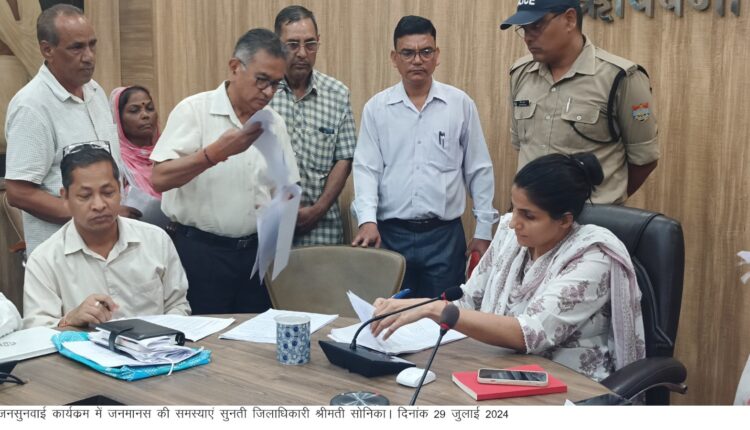 जिलाधिकारी श्रीमती सोनिका की अध्यक्षता में ऋषिपर्णा सभागार में जनसुनवाई का आयोजन किया गया। जनसुनवाई में आज 119 शिकायत प्राप्त हुई।