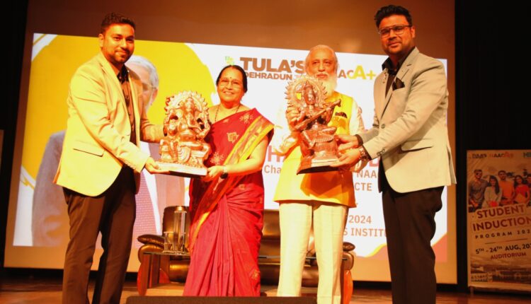 देहरादून, : तुलाज़ इंस्टिट्यूट ने आज कॉलेज परिसर में आयोजित स्टूडेंट इंडक्शन प्रोग्राम के दौरान एनएएसी और एनबीए के अध्यक्ष और एआईसीटीई के पूर्व अध्यक्ष प्रो. डॉ. अनिल सहस्रबुद्धे और उनकी पत्नी माधुरी सहस्रबुद्धे, जो विश्व स्तर पर प्रसिद्ध सामाजिक कार्यकर्ता हैं, द्वारा गेस्ट लेक्चर की मेजबानी करी।