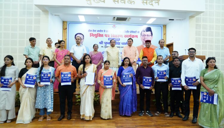 मुख्यमंत्री पुष्कर सिंह धामी ने मंगलवार को मुख्यमंत्री आवास स्थित मुख्य सेवक सदन में उच्च शिक्षा विभाग के अन्तर्गत लोक सेवा आयोग, उत्तराखण्ड से चयनित 72 असिस्टेंट प्रोफेसर को नियुक्ति पत्र प्रदान किये।