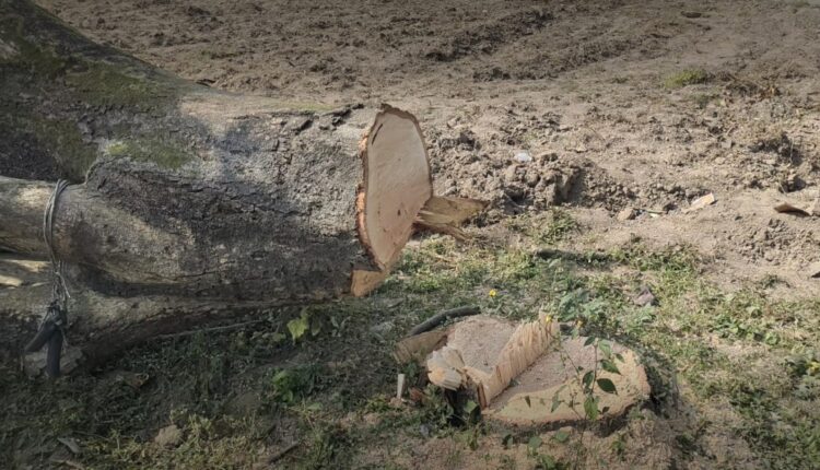 थानों रेंज में कंक्रीट का जंगल बनाने के लिए हरे पेड़ की बली आम के हरे पेड़ों पर चली आरियां i