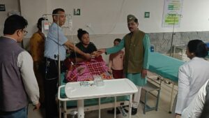 भाजपा के वरिष्ठ नेता व महारानी राज्य लक्ष्मी शाह सांसद टिहरी लोकसभा के प्रतिनिधि विनोद खंडूरी नेे अस्पतालों के मरीजों से उनका हाल-चाल जाना और उन्हें फल भेंट किये।
