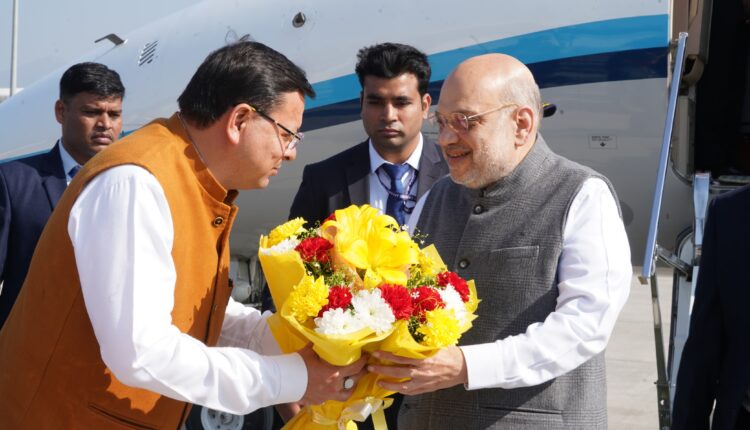 केन्द्रीय गृह एवं सहकारिता मंत्री अमित शाह के देवभूमि उत्तराखंड आगमन पर मुख्यमंत्री पुष्कर सिंह धामी ने जौलीग्रांट एयरपोर्ट पर उनका स्वागत किया।