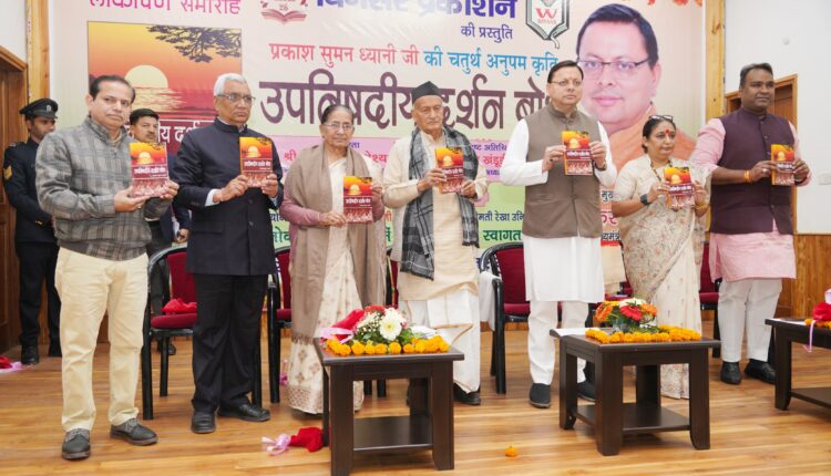 मुख्यमंत्री पुष्कर सिंह धामी ने बुधवार को मुख्यमंत्री कैम्प कार्यालय स्थित मुख्य सेवक सदन में श्री प्रकाश सुमन ध्यानी द्वारा लिखित पुस्तक ‘उपनिषदीय दर्शन बोध’ का विमोचन किया।