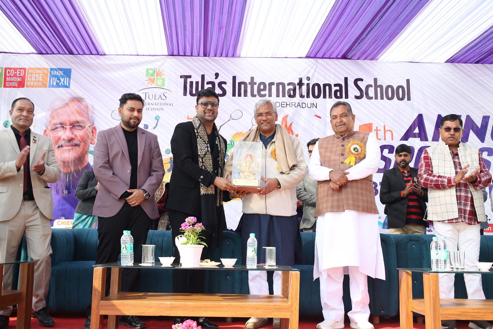 *देहरादून, ।:* तुलाज़ इंटरनेशनल स्कूल ने आज स्कूल परिसर में अपना 11वां वार्षिक खेल दिवस मनाया। इस अवसर पर मुख्य अतिथि के रूप में सांसद और उत्तराखंड के पूर्व मुख्यमंत्री त्रिवेंद्र सिंह रावत और विशिष्ट अतिथि विधानसभा सदस्य सहदेव सिंह पुंडीर मौजूद रहे। साथ ही इस अवसर पर भाजपा की जिला अध्यक्ष मीता सिंह और प्रसिद्ध उद्योगपति डॉ. के.एस. पंवार भी मौजूद रहे। उनके साथ तुलाज़ इंटरनेशनल स्कूल के उपाध्यक्ष रौनक जैन, प्रौद्योगिकी के उपाध्यक्ष डॉ. राघव गर्ग और प्रधानाध्यापक रमन कौशल भी मौजूद रहे।