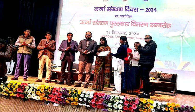 देहरादून। राष्ट्रीय ऊर्जा संरक्षण दिवस 2024 के अवसर पर राजधानी देहरादून में ऊर्जा संरक्षण दिवस का आयोजन उत्तराखण्ड अक्षय ऊर्जा विकास अभिकरण (उरेडा) द्वारा एस०सी०ई०आर०टी०, ननूरखेड़ा, देहरादून के सभागार में किया गया। जिसमें उरेडा.. एस०सी०ई०आर०टी० के अतिरिक्त विभिन्न विभागों / संस्थाओं, शिक्षण संस्थाओं से आये स्कूल ऊर्जा मित्रों, राज्य के ऊर्जा निगमों में कार्यरत ऊर्जा ऑडिटरों, विभिन्न विद्यालयों के विद्यार्थियों, अभिभावकों, शिक्षकों एवं बुद्धिजीवियों द्वारा प्रतिभाग किया गया।