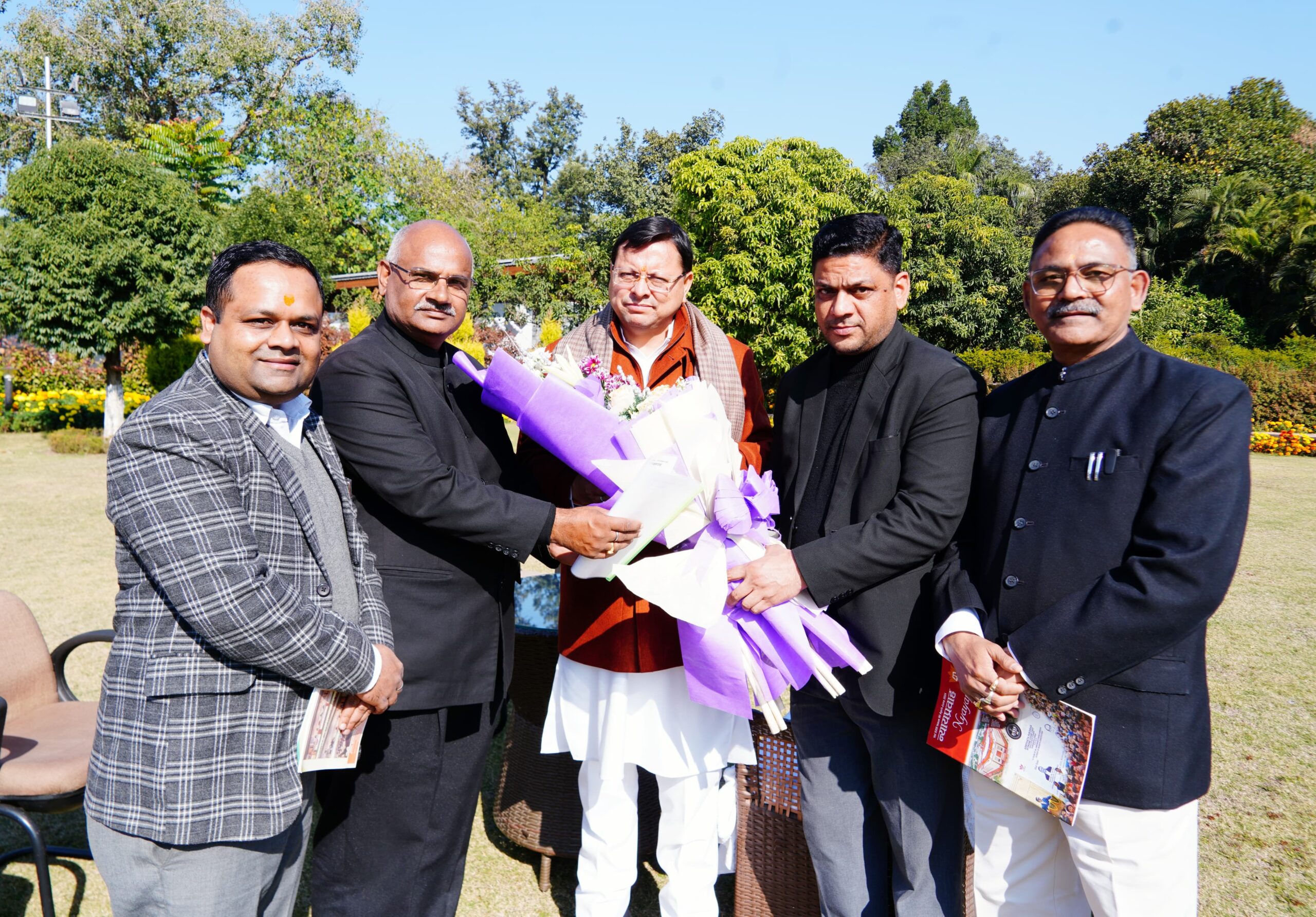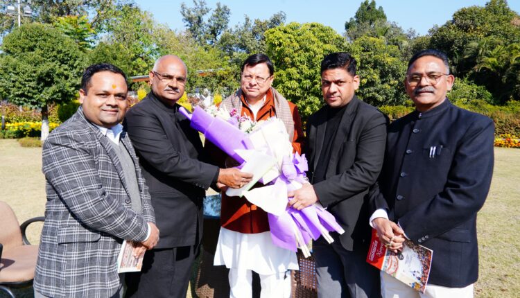 देहरादून। मुख्यमंत्री पुष्कर सिंह धामी से मुख्यमंत्री आवास में बार एसोसिएशन देहरादून के अध्यक्ष राजीव शर्मा, सचिव राजबीर सिंह बिष्ट एवं अन्य पदाधिकारियों ने भेंट की। उन्होंने भेंट के दौरान नवीन दीवानी न्यायालय परिसर में अधिवक्तागण के चेम्बर्स के निर्माण के लिए सहयोग धनराशि और एमडीडीए में प्रस्तुत मानचित्र में विकास शुल्क को माफ किया जाने एवं विकास शुल्क मुक्त किये जाने का मुख्यमंत्री से अनुरोध किया।