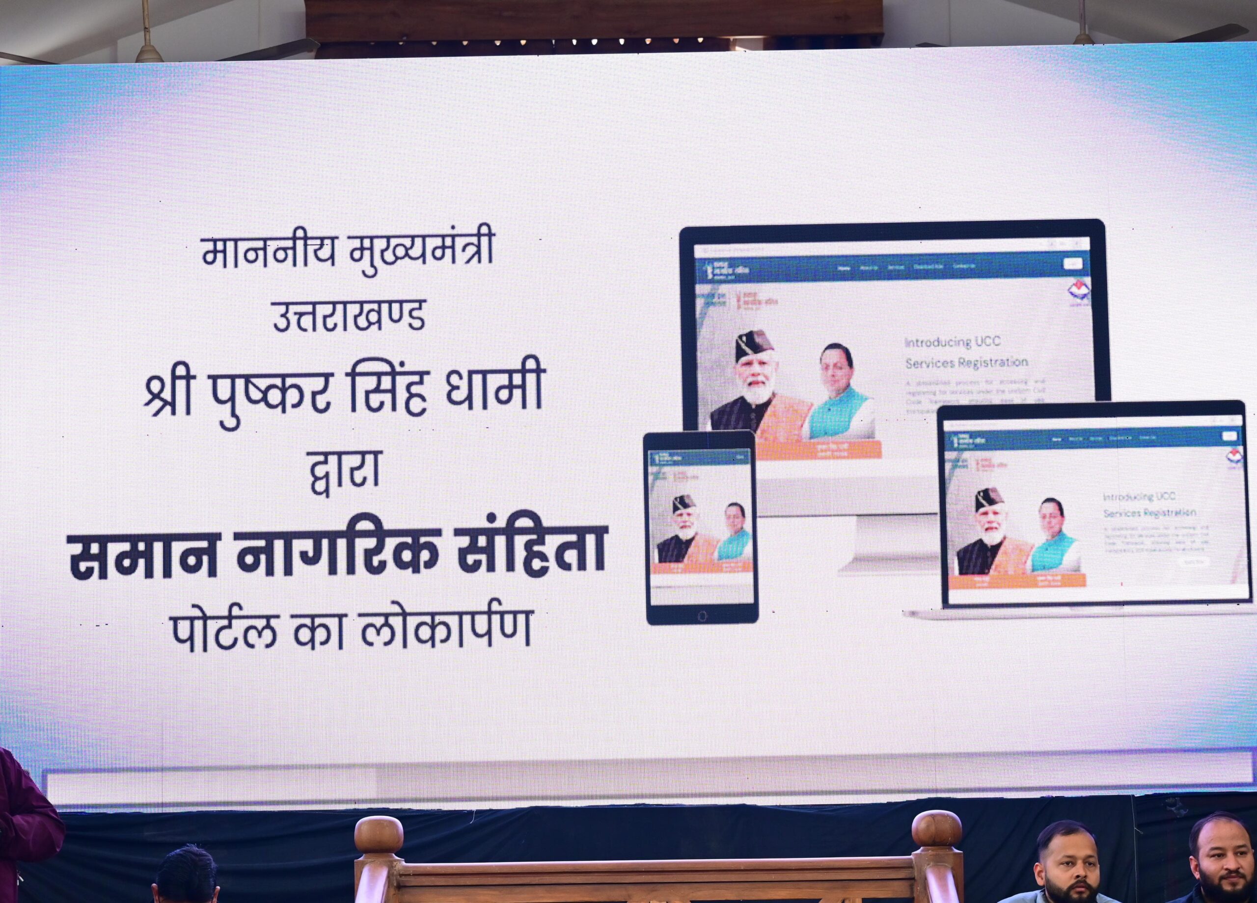 सोमवार को सीएम आवास स्थित मुख्य सेवक सदन में आयोजित समारोह में मुख्यमंत्री श्री पुष्कर सिंह धामी ने विधिवत तौर पर समान नागरिक संहिता की अधिसूचना का अनावरण, यूसीसी पोर्टल ucc.uk.gov.in का भी शुभारंभ और यूसीसी नियमावली बुकलेट का विमोचन किया। यूसीसी पोर्टल पर मुख्यमंत्री ने सबसे पहले अपने विवाह का पहला पंजीकरण कराया, जिसका प्रमाणपत्र मुख्य सचिव श्रीमती राधा रतूड़ी ने मुख्यमंत्री को सौंपा। इस अवसर पर मुख्यमंत्री ने यूसीसी के तहत सर्वप्रथम पंजीकरण कराने वाले पांच आवेदकों को भी प्रमाणपत्र प्रदान किए।