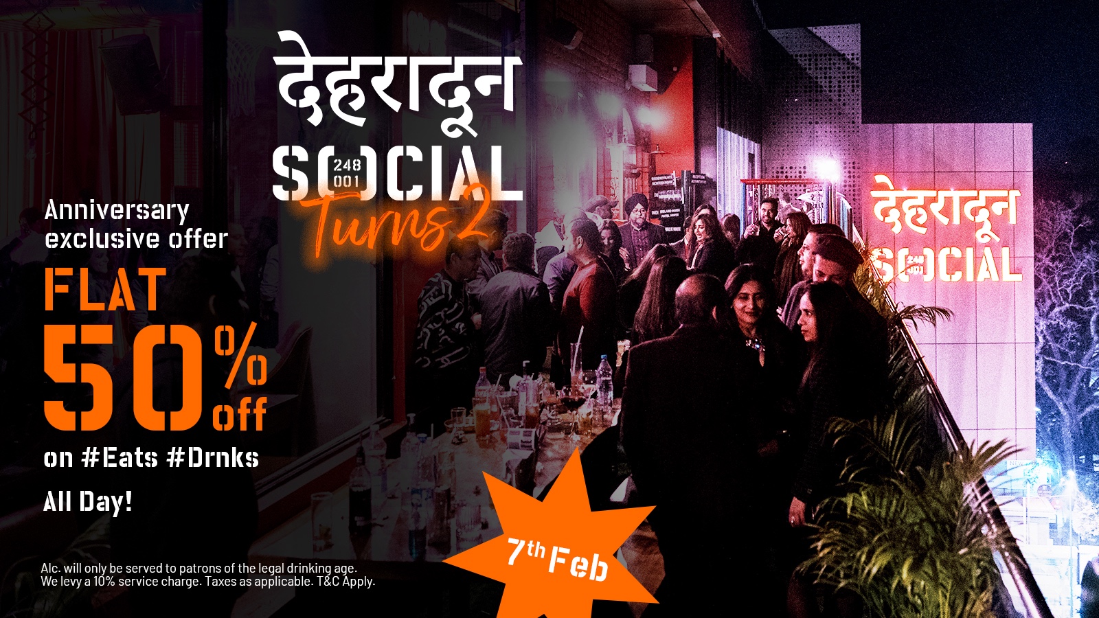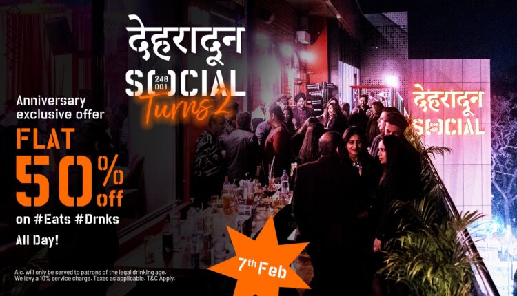 *देहरादून, :* देहरादून सोशल अपनी दूसरी वर्षगांठ 7 फरवरी को शानदार अंदाज में मनाने जा रहा है। इस खास मौके पर, ग्राहक पूरे मेन्यू पर 50% की छूट का लाभ उठा सकते हैं, जिससे वे अपने पसंदीदा व्यंजनों और सिग्नेचर कॉकटेल का आधी कीमत पर आनंद ले सकेंगे।