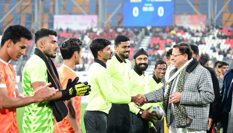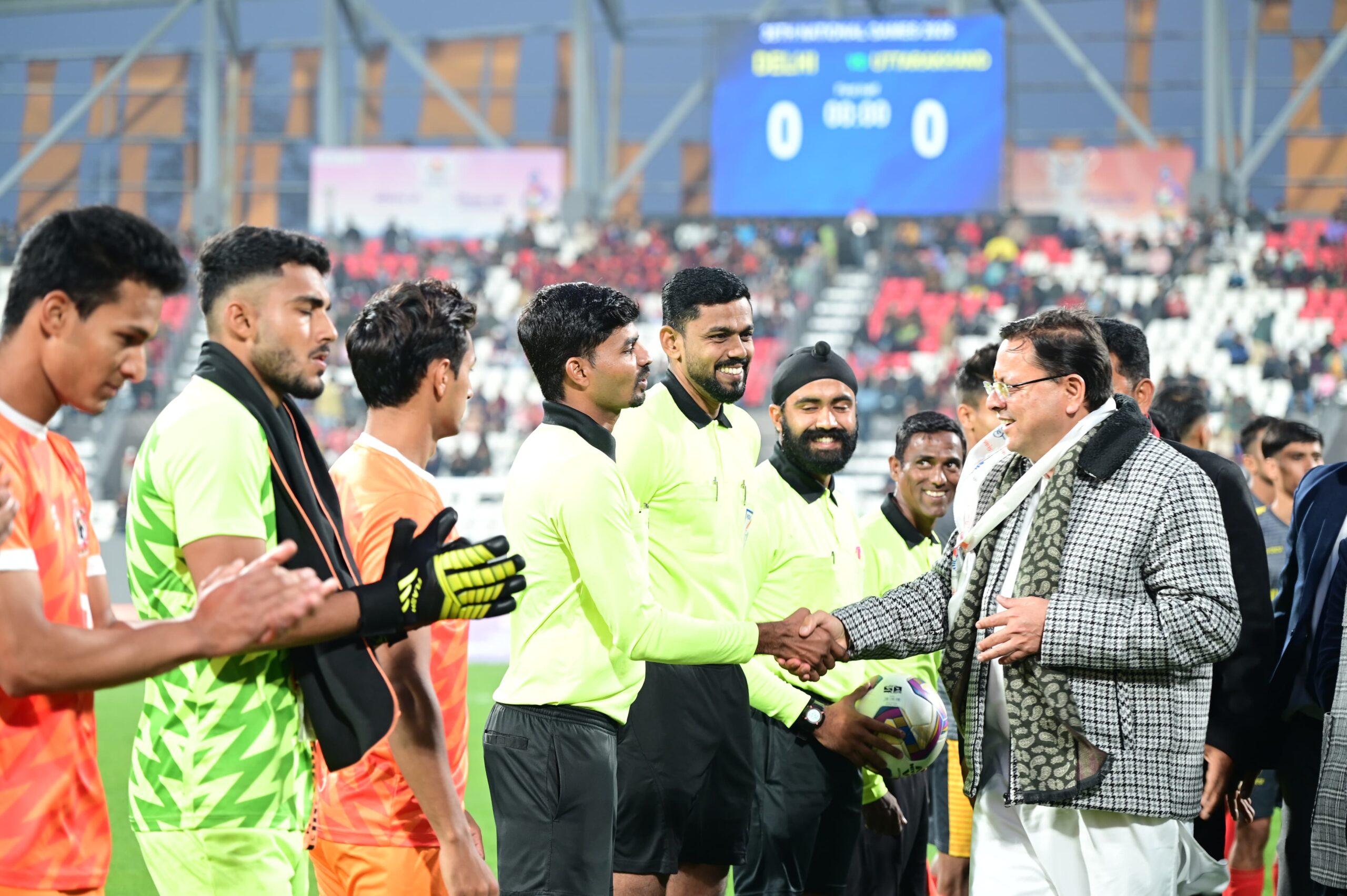 देहरादून। मुख्यमंत्री पुष्कर सिंह धामी ने बुधवार को हल्द्वानी स्थित गौलापार स्पोर्ट्स स्टेडियम में आयोजित हो रहे 38 वें राष्ट्रीय खेलों की विभिन्न व्यवस्थाओं का निरीक्षण किया। इस अवसर पर मुख्यमंत्री ने स्टेडियम में उत्तराखंड एवं दिल्ली के मध्य खेले गए फुटबॉल सेमीफाइनल मैच में खिलाड़ियों से परिचय प्राप्त कर फुटबॉल मैच का अवलोकन भी किया। साथ ही खिलाड़ियों का मनोबल बढ़ाते हुए उत्साहवर्धन किया।