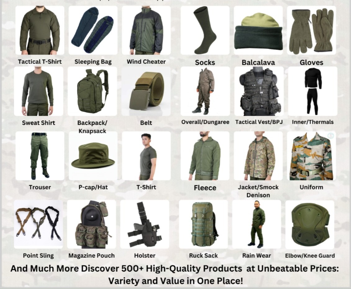 Officer training Academy बौद्ध नगरी :::गया:: में जिसमें मैन्युफैक्चरिंग रेट पर समस्त भारतीय सेना के लिए इस्तेमाल होने वाले उपकरण उपलब्ध होंगे रक्षक, ट्राउजर, बैग, टैक्टिकल टी-शर्ट, स्लीपिंग बैग, विंडचीटर, ग्लव्स स्वेटशर्ट, बैगपैक, बैल्ट Overall, Tactical Vest/BPJ, Thermals, Tactical Trousers, P-Cap/Hat, T-Shirt, Fleece, Jacket, Smock Denison, Uniform, Rifle Sling, Holster, Rain Wear, Tactical Gears & Much More