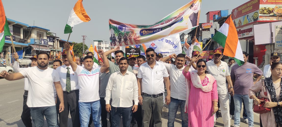 ऑपरेशन सिंदूर मे भारतीय सेना के अदम्य साहस और पराक्रम के सम्मान मे विशाल तिरंगा यात्रा निकाली गई। इस दौरान सैकड़ों लोगों ने इस रैली में प्रतिभाग कर पाकिस्तान मुर्दाबाद के नारे लगाए गए। रानीपोखरी के बालिका इंटर कालेज से रानीपोखरी चौक होते हुए नागा घेर तक तिरंगा यात्रा का आयोजन किया गया। इस दौरान इस यात्रा में पूर्व सैनिक व बीजेपी के कार्यकर्ताओं के साथ स्कूली बच्चों और महिलाओं ने बढ़चढकर हिस्सा लिया। इस दौरान कहा कि ऑपरेशन सिंदूर के तहत पाकिस्तानी आतंकवाद और उनके 9 ठिकानों पर एयर स्ट्राइक कर उन्हें ध्वस्त कर दिया वहीं रक्षा केंद्रों को हमारे सैनिकों सशस्त्र बलों ने मोर्चे पर पाकिस्तान को शिकस्त देकर अच्छा खासा नुकसान पहुंचाया हमारे सशस्त्र बलों और प्रधानमंत्री नरेंद्र मोदीजी के अटूट नेतृत्व के सम्मान में यह तिरंगा यात्रा निकाली गई है। कहा कि ऑपरेशन सिंदूर मे भारतीय सेना के अदम्य पराक्रम एवं शौर्य प्रदर्शन के सम्मान की जितनी सहराना की जाए वो कम है।