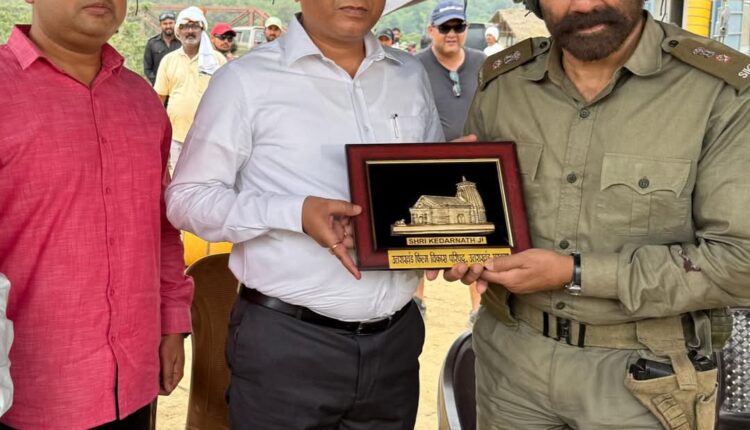 देहरादून। उत्तराखण्ड फिल्म विकास परिषद के मुख्य कार्यकारी अधिकारी बंशीधर तिवारी ने आज देहरादून के हल्दूवाला स्थित बॉर्डर 2 के सेट पर सुप्रसिद्ध अभिनेता सनी देओल और निर्देशक अनुराग सिंह से मुलाकात की। इस अवसर पर उनके साथ परिषद के संयुक्त सीईओ डॉ. नितिन उपाध्याय भी मौजूद थे।