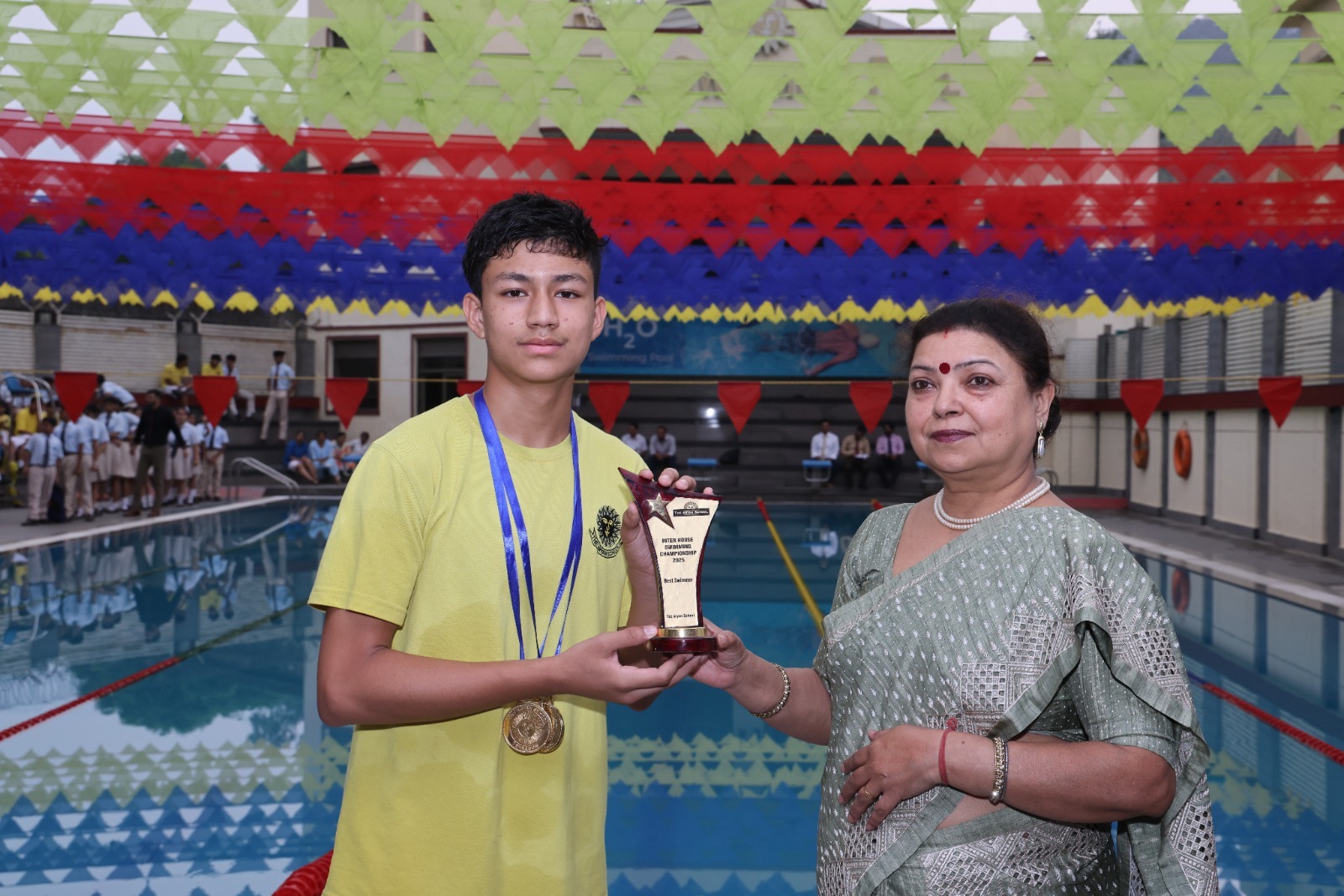 कड़ी प्रतिस्पर्धा के बाद परिणामों की घोषणा की गई। यजुर हाउस को चैंपियंस ट्रॉफी का विजेता घोषित किया गया। सामा हाउस द्वितीय स्थान पर रहा, जबकि अथर्वा हाउस ने तृतीय स्थान प्राप्त किया। सर्वश्रेष्ठ तैराक (बालक) का पुरस्कार यजुर हाउस के शौर्य रावत को प्राप्त हुआ, वहीं सर्वश्रेष्ठ तैराक (बालिका) का खिताब अथर्वा हाउस की निवेदिता भारद्वाज को मिला।