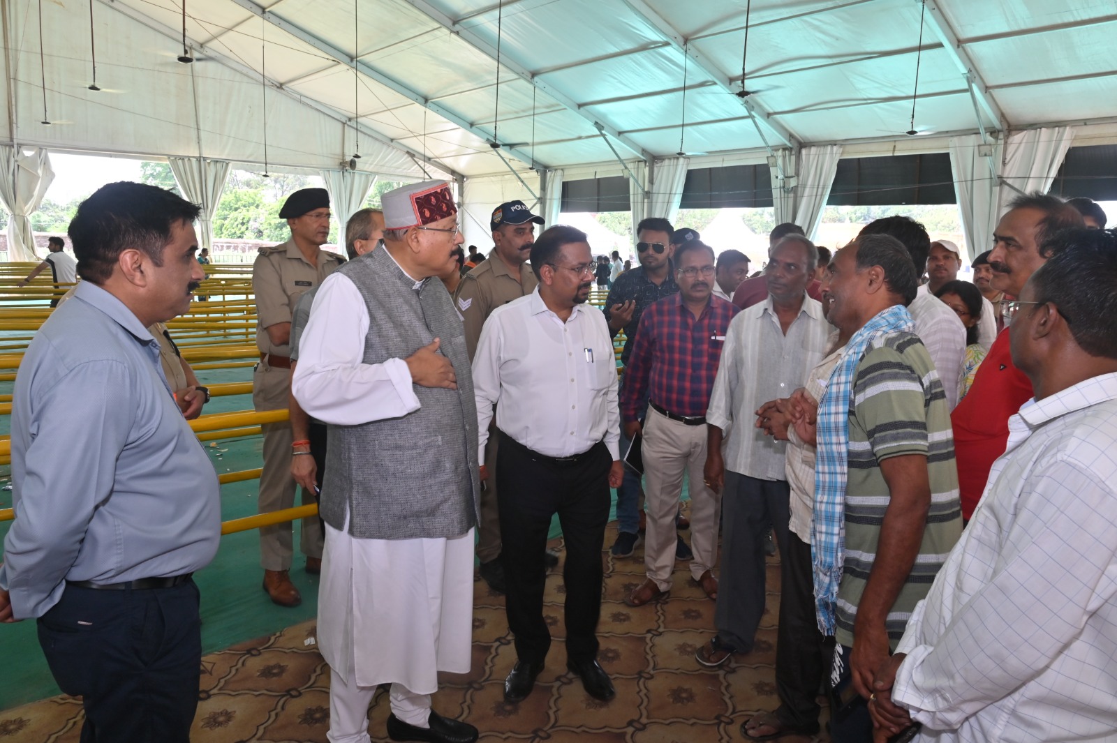 हरिद्वार। प्रदेश के लोक निर्माण, सिंचाई, पंचायतीराज, ग्रामीण निर्माण,पर्यटन, धर्मस्व, संस्कृति मंत्री एवं जनपद के प्रभारी मंत्री सतपाल महाराज ने गुरूवार को अचानक ऋषिकुल मैदान पहुॅचकर चारधाम यात्रा पंजीकरण केन्द्र का स्थलीय निरीक्षण किया। निरीक्षण के दौरान उन्होंने पंजीकरण केन्द्र पर यात्रियों की सुविधा हेतु पंजीकरण काउण्टर, बैठने, पेयजल, शौचायलय, चिकित्सा, सुरक्षा आदि व्यवस्थाओं का जायजा लेते हुए अधिकारियों को आवश्यक दिशा-निर्देश दिये।
