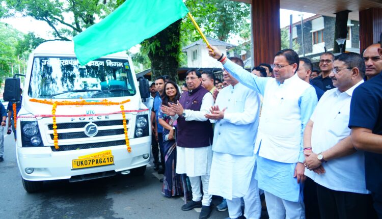 मुख्यमंत्री पुष्कर सिंह धामी ने सोमवार को मुख्यमंत्री कैम्प कार्यालय से आयोजित एक समारोह में उत्तराखण्ड परिवहन निगम द्वारा संचालित की जा रही 20 नई वातानुकूलित यूटीसी मिनी (टैम्पो ट्रेवलर) का फ्लैग ऑफ किया।